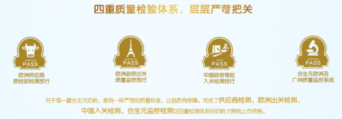 严苛的品控是合生元奶粉品质的保障也是上榜的理由。每一罐合生元奶粉都需经过“四重防火墙”,才能够最终流通进入市场,需要经过产地政府以及国外供应商的“考验”,方可出品及获得原产国证明。且每一罐合生元奶粉都可以追溯源头。