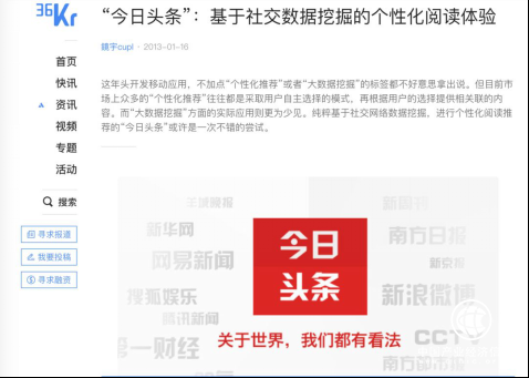 2010年12月,36氪的网站正式上线,2012年,今日头条上线了第一个版本。2013年初,36氪发布了今日头条的第一篇报道。