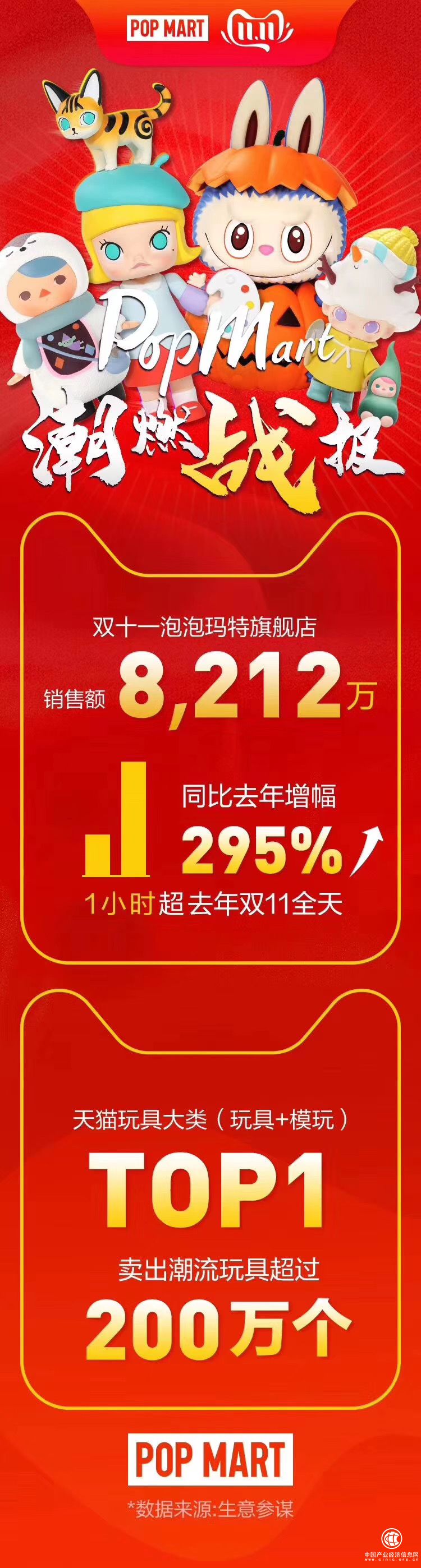 图:POP MART泡泡玛特天猫旗舰店双11超国际大牌获玩具大类TOP1
