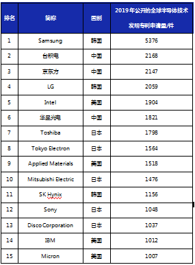 数据提取的参考数据:2019年公开的全球半导体技术发明专利申请数量
