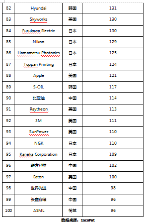 201 9 年全球半导体技术发明专利排行榜(前 10 0名)