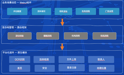 据信也科技研发中心总监郭昉介绍,界面动态化、流程配置化、能力模块化是实现大前端动态化、高效对接不同机构的用户资料要求及风控体系的核心能力。研发人员从系统架构上进行梳理,抽象出来WebUI组件化,来满足界面动态化,研发路由框架满足流程配置化,对平台化组件进行模块化封装以对上游提供高效的支持。通过大前端动态化管理,信也科技移动端研发团队已实现了跨端一致、动态发布、原生页面体验,并将交付周期缩短50%以上。