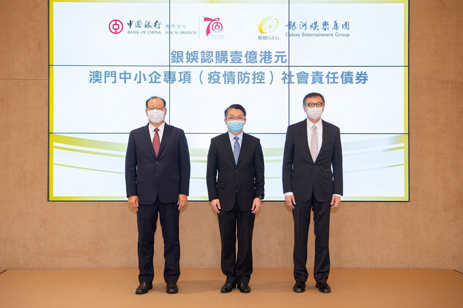 3月5日,在澳门特别行政区政府经济财政司司长李伟农先生的见证下,银娱宣布投放一亿港元,认购中国银行澳门分行(下称澳门中银)日前发行之中小企业专项(疫情防控)社会责任债劵(下称社会责任债劵),以协助缓解本地企业在疫情下所受到之影响。