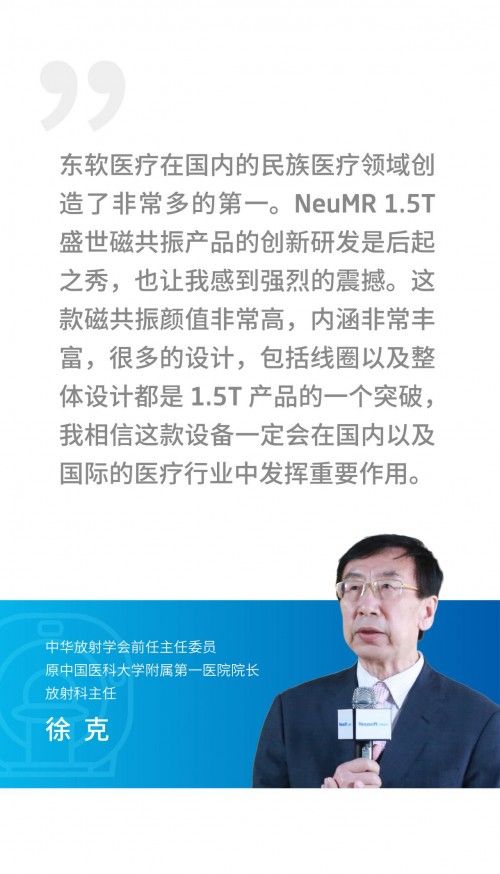 “NeuMR 1.5T盛世磁共振的发布承载了公司的使命,也凝聚了东软医疗人的智慧与创新,无论从工艺的设计还是生产研发都有质的飞跃,相信这款磁共振产品定能以卓越的品质服务国内外民众的健康。”东软医疗总裁兼首席运营官江根苗如是说。