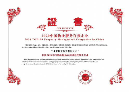 正荣服务凭借全国布局、快速成长、双轮驱动的优异表现,跻身2020中国物业服务企业19强,荣获“2020中国物业服务百强企业”、“2020中国物业服务百强满意度领先企业”荣誉,其所管理的项目虹桥·正荣府获得“2020中国物业服务行业示范基地”荣誉。