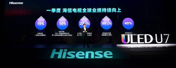 出色的产品竞争力为海信在逆境中赢得良好业绩。一季度海信海外销售数据显示,海信电视在百思买、电商平台亚马逊等渠道的销售额大幅增长,继续保持着高速增长的势头。北美地区一季度出货量增长19%。在日本市场,海信和东芝两个品牌的销量同比增长均超过10%;在中国,今年第一季度海信电视线下市场份额占比高达22.77%,较第二名大幅领先,海信激光电视销售量同比增长近100%,在80吋及以上大屏电视市场的占比接近40%。