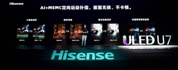 作为一款超画质电视,MEMC动态补偿技术自然没有缺席。相比普通电视,U7利用AI+MEMC算法,能够针对移动物体进行定向精准地补偿,而对固定场景进行保护,在提升流畅性的同时降低画面损失。