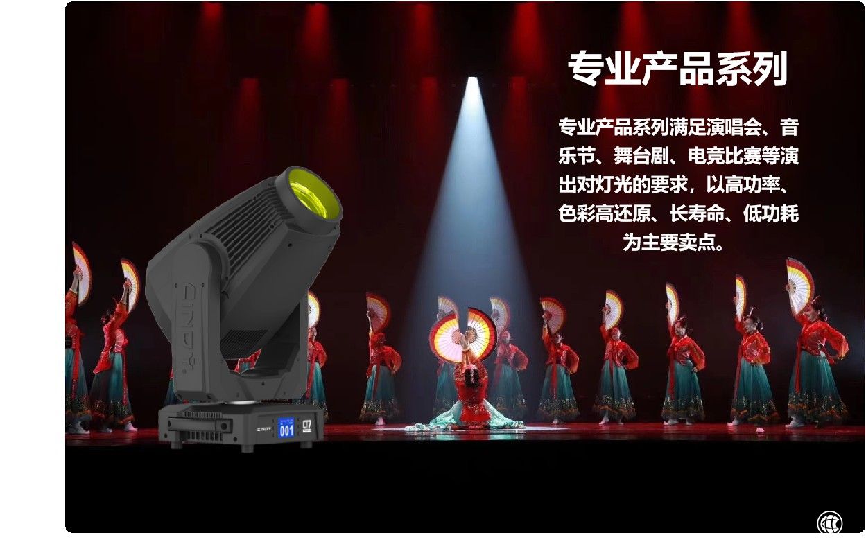 其中“Cindy”舞台灯光系列,因为过硬的技术和严谨的制作流程,使产品无论从设计、性能、质量、工艺等方面均达到国际顶尖水平。