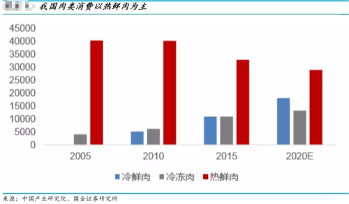 现在,市面上的猪肉主要有以下三种:热鲜肉、冷鲜肉及冷冻肉,鲜肉产品仍然占猪肉消费的大部分。根据中国产业研究院的报告,2015年我国热鲜肉消费量占猪肉总消费量的比例为60%。