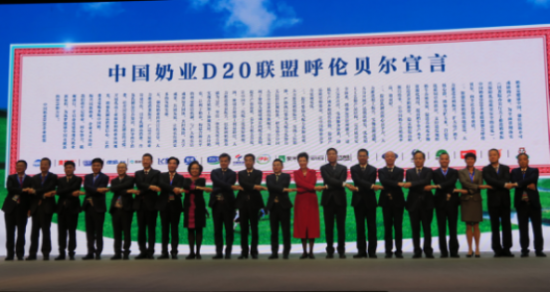 会议期间,蒙牛携手另外19家企业共同发布了《中国奶业D20联盟呼伦贝尔宣言》。宣言提出,为全面贯彻落实国务院办公厅《关于推进奶业振兴保障乳品质量安全的意见》,中国奶业D20联盟向全社会郑重承诺,加强优质奶源基地建设,大力推进养殖振兴;提高乳制品核心竞争力,大力推进加工振兴;提升婴幼儿配方奶粉品质,大力推进奶粉振兴;密切养殖加工利益联结,大力推进效益振兴;强化奶业科普宣传引导,大力推进消费振兴。振兴民族奶业,企业义不容辞,我们将牢记使命,砥砺前行,开启奋进建设现代化奶业新征程,为筑梦健康中国贡献新的智慧和力量。