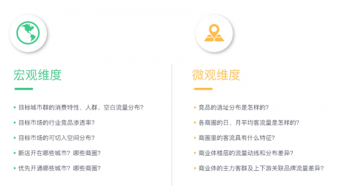 从宏观到微观,数据颗粒度精细全面。睿选从全国-省份-地市-区域-某商圈-商业体-单点空间形成逐层钻取,客户应用层次广泛,上至管理层设置宏观选址年度计划,下至执行层了解微观商圈数据的需求均可基本满足,帮助客户实现了从经验化到数据化决策辅助的价值。