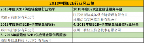 敦煌网、化纤邦、马上银、卖好车、摩贝网、木材码头、欧冶云商、奇化网、全塑联、扫IC网、铜道、我的钢铁、五阿哥、亿建联、易单网、易煤网、易塑家、优化工、找钢网、中驰车福、中国电力设备信息网、中国网库、酒仙网等企业凭借自身独特的优势,获得“2018中国B2B企业竞争力30强“的荣誉。