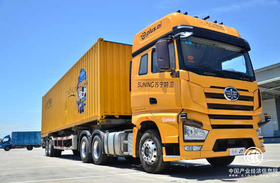 (图:苏宁推出的无人重卡“行龙一号”)