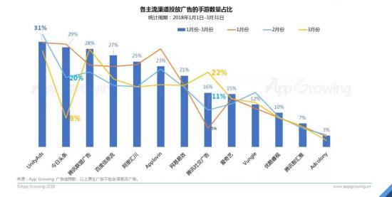 Q1期间UnityADs备受厂商青睐,腾讯社交广告投放显著上涨