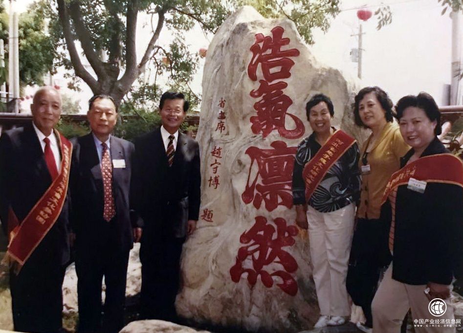 2010年4月2日,王满秋会长在台湾拱云宫赵守博主席捐赠刻石前合影