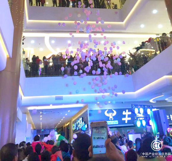 (汕头苏宁易购直营店“气球雨”现场图)