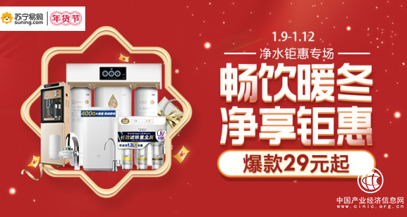 1月9日至12日,苏宁将推出净水钜惠专场活动,提供净水器爆款29元起、5折秒,抢500元神券,满额赠空气净化器等优惠。线下门店还持续开展净水器2件88折钜惠活动,助力消费者畅饮健康水。