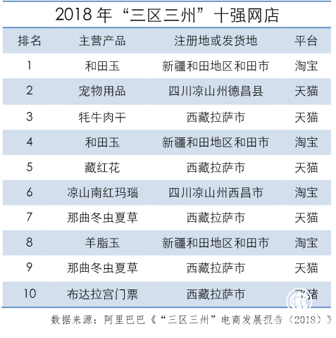 阿里巴巴发布的《“三区三州”电商发展报告(2018)》显示,在“三区三州”209个区县(含县级市,下同),均已在阿里平台发展电商经济。