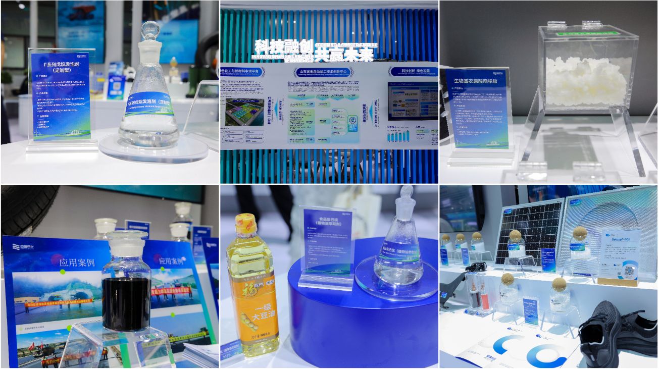 此外,京博石化展示了多项绿色创新成果:在功能化学品领域,公司成为山东首家获得食品级正己烷生产许可的企业,并加入中国粮油学会;碳氢环保发泡剂荣获“山东知名品牌”,有效替代氟利昂等有害物质;“海韵”耐久性高模量改性沥青实现路面减薄39厘米,每公里节省石料2.3万吨,全生命周期碳减排50%,使用寿命延长至35年以上,显著提升道路环保性与可持续性。废塑料化学再生实现聚丙烯产品交付,推动包装领域闭环利用。依托八大中试平台,公司在POE、生物基、橡胶等项目上实现产业化突破,其中生物基衣康酸酯橡胶相比传统产品每吨可减少约1.4吨二氧化碳排放,持续拓展绿色低碳新路径。