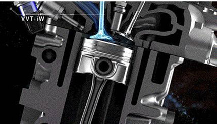 其次是著名的阿特金森循环和垂直涡流进气口的综合运用。D-4T发动机采用了阿特金森循环设计,通过改变进气门机械结构来实现减小燃油消耗。在采用阿特金森循环结构的同时,D-4T还在取消喷射歧管的基础上取消了气流控制阀,利用进气口和缸内活塞的形状产生了纵向涡流,进一步提升了缸内直喷的效率,堪称直喷发动机中的战斗机。