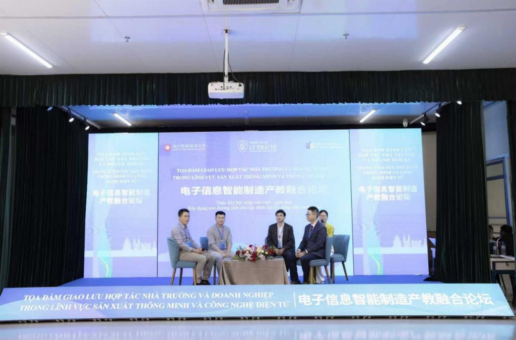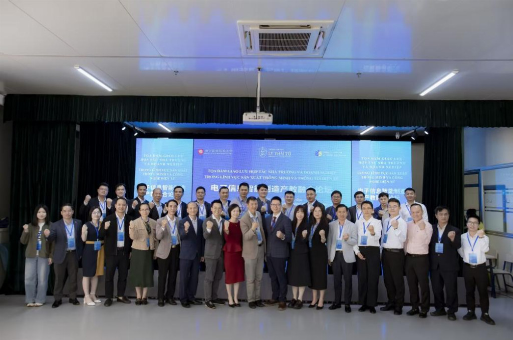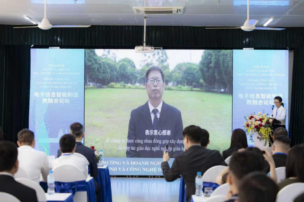 11月25日,电子信息智能制造产教融合论坛在越南北宁省慈山市越南李太祖学院成功举办。本次论坛由南宁职业技术大学、越南李太祖学院、中国—越南电子信息现代工匠学院及巨大教育科技集团联合主办,以“深化越中产教融合,共筑高素质工匠人才新通道”为主题,吸引中越双方政府、院校及企业代表70余人参与。