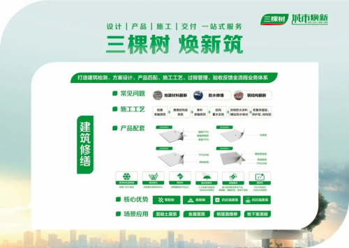 随后,三棵树城市焕新战略部总监兼售前支持部总监华政安介绍城市焕新业务战略定位。三棵树凭借二十余年深厚的行业积累,依托全域空间设计、全筑美学理念、绿色产品体系等多方面优势,为城市焕新打造集设计、产品、施工、交付于一体的一站式服务。其中,以内外墙无机涂料、工程艺术漆、工程板材,以及基辅材“四大金刚”产品为核心,构筑了城市焕新十大场景解决方案,引领行业迈向更高层次的发展,全面焕新城市活力。