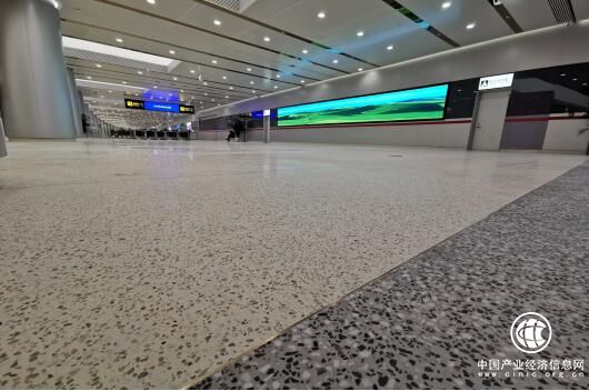 大兴机场高铁站站内地面采用大尺寸分格水泥人造石工艺,在国内高铁站装修中属于首次使用。技术人员在传统工艺基础上添加新工序十几道,并在后期处理中采用无水磨平工艺,即节约水资源,又避免了污水处理难题,开创了国内先河。