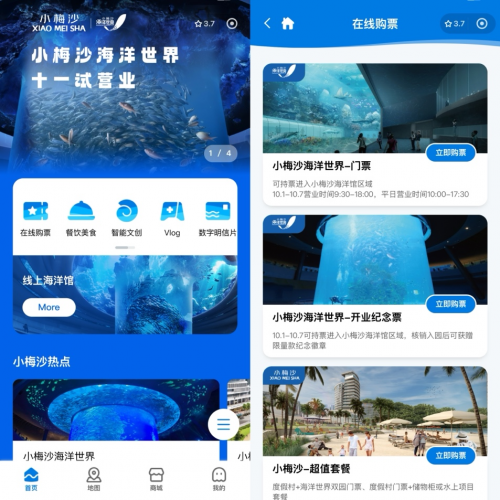 作为深圳乃至大湾区新地标景区,智慧小梅沙将提供高品质的游客服务作为重中之重。通过“小梅沙官方”小程序,游客可以完成订票、导览、攻略等多维度功能,覆盖游前、游中、游后的服务全流程,打通”食、住、行、游、购、娱、商、学、闲“等要素,围绕“亲海度假”共建智慧城市美好生活。