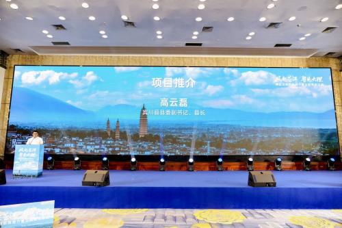 随后,大理各县区领导依次登台推介。石怀瑰宝,文脉流芳,大理市人民政府王剑市长作主旨推介,以"风花雪月"的生态人文优势为基底,重点打造"环洱海旅居圈"七大产品体系,建设集数字游民社区、康养度假、文化艺术创作、户外运动于一体的世界级旅居目的地。