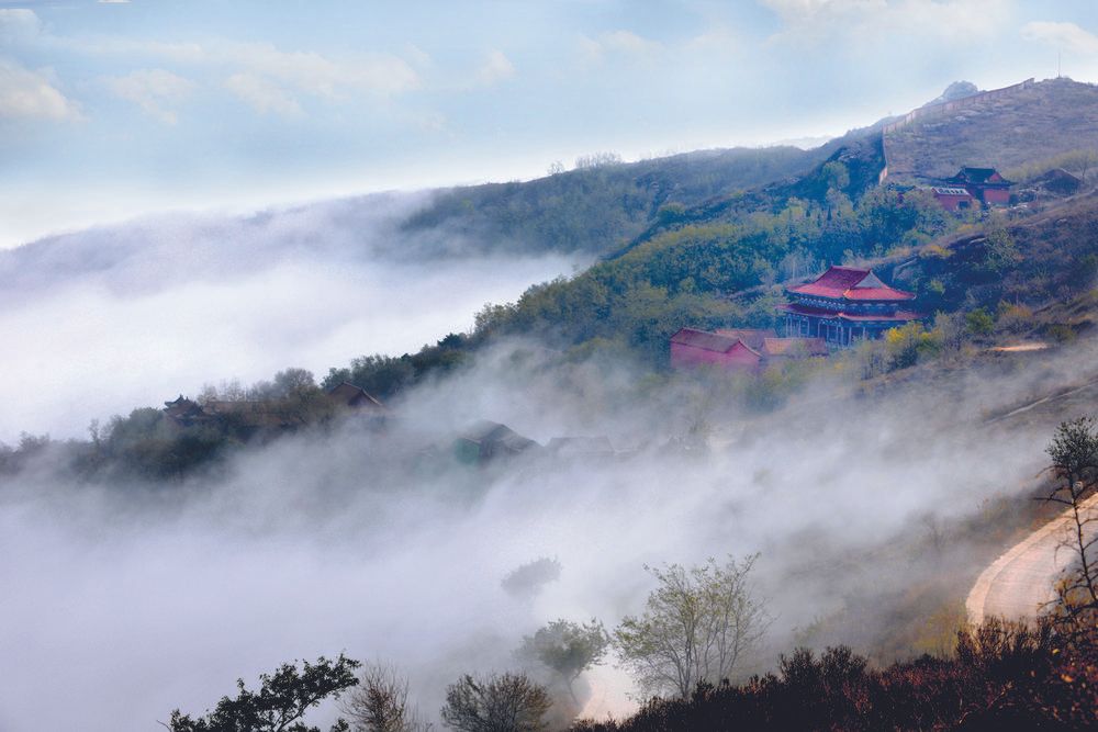 抱犊寨是画卷中最亮眼的笔触。太行群山间的奇寨四周悬崖峭壁,形似卧佛,山岚中尽显静谧。山顶600多亩平坦良田堪称奇迹,深66米洼地草木繁盛、鸟虫和鸣,宛若世外桃源。这里既是韩信“背水一战”的古战场,也留存着百姓抱犊避乱的印记,以“天堂幻觉、人间福地、兵家战场、世外桃源”的独特气质被誉为“天下奇寨”,吸引无数游客登高寻古。