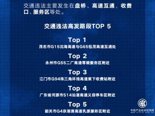 本次《指南》还发布有安全驾驶提示信息,其中在易发生事故高速中,广东省、江苏省、河北省、山东省、四川省前五省份易发生事故路段占比达到35%,G15沈海高速(广东)排在高速易发生事故路段首位。