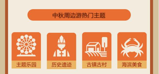 从周边自驾游、高铁游热门目的地的分布可以发现,中秋假期,主题乐园、历史遗迹、古镇古村、海滨美食等是较为热门的出游主题。