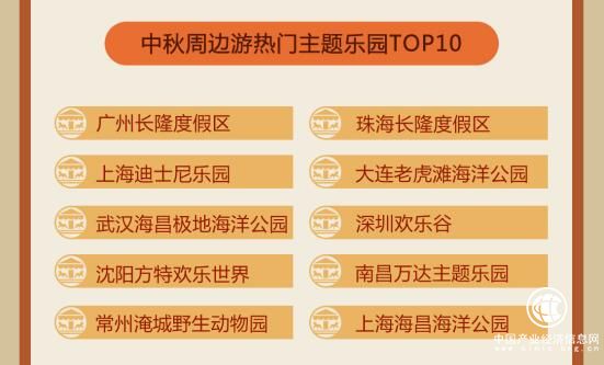 由于中秋假期以家庭客群为主,带孩子打卡主题乐园成为热门之选,其中,广州长隆度假区、珠海长隆度假区、上海迪士尼乐园、大连老虎滩海洋公园、武汉海昌极地海洋公园、深圳欢乐谷、沈阳方特欢乐世界、南昌万达主题乐园、常州淹城野生动物园、上海海昌海洋公园等乐园景区受到追捧。