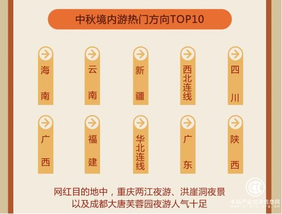 《报告》显示,海南、云南、新疆、西北连线、四川、广西、福建、华北连线、广东、陕西上榜“2019中秋境内游热门方向TOP10”榜单。
