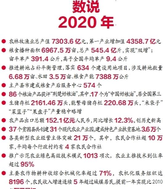 2013年至2020年,全省粮食总产连续8年稳定在500亿斤以上。