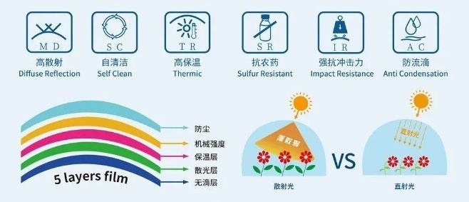 雷马农膜以创新研发的“防灼伤漫散射®技术”为核心,能将强直射光转化为柔和均匀散射光,针对作物对光、温、湿度的特定需求,创新研制出多款专用膜产品。例如,蓝莓专用膜、草莓专用膜等,能够有效调节棚内光照与温度,创造更适宜作物生长的微气候环境。同时,雷马还配套提供防鸟网、遮黑布等系列覆盖设施,形成完整的农业覆盖解决方案,满足种植全程的多样需求。