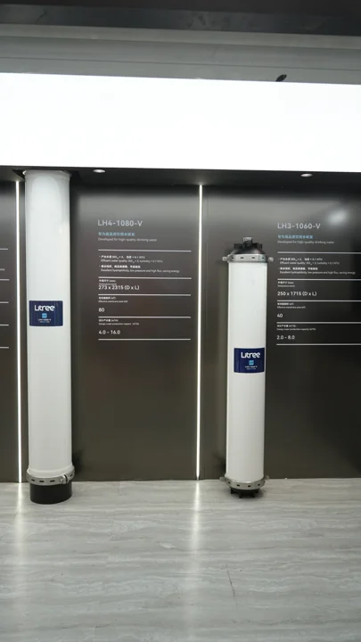 此次环博会上,立升重点展出的LH3-1060-V和LH4-1080-V两款内压式超滤膜组件,专为高品质饮用水研发,亲水性好、通量高,产水水质SDI15<3、浊度<0.1NTU,保障出水品质。