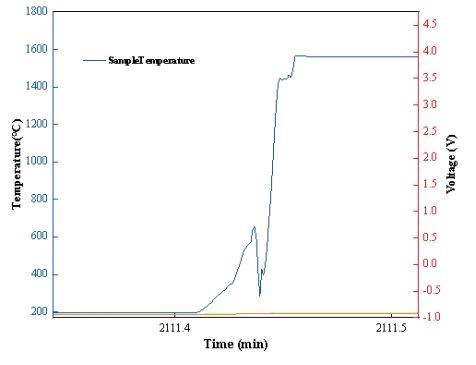 对图2温度数据及图3产气速率、产气量数据进行分析后发现,该电池热失控十分剧烈,并且放大样品温度曲线可以发现,整个热失控过程从开始到结束持续不到3s,就完成了1300℃以上的温升,温升速率达到了200000℃/min以上。同时,观察气体数据可以发现,在热失控过程中最大产气速率达到15000L/min以上,展现了锂电池燃爆时极强的冲击力。