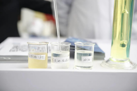 现场,油品工程师通过“五步决”向观众详细示范了如何鉴别优质油品:看颜色、闻味道、摸手感、测密度、关注闪点及相关指标等。作为工程机械行业的“血液”,油品质量、价格直接影响设备运转的效率及成本,三一云油携手中石化、中石油、海科集团等国家主营单位及优质地炼,致力于为客户提供正规、优质的好油品。