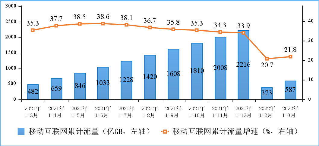 移动电话用户规模稳中有增,5G用户快速发展。截至3月末,三家基础电信企业的移动电话用户总数达16.6亿户,比上年末净增1820万户。其中,5G移动电话用户达4.03亿户,比上年末净增4811万户,占移动电话用户的24.3%,占比较上年末提高2.7个百分点。