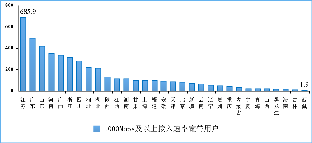 图3 100M速率以上、1000M速率以上的固定互联网宽带接入用户情况