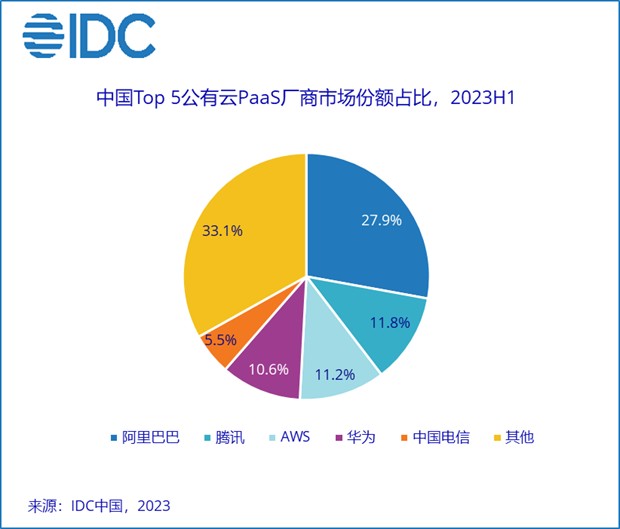 近日,国际数据公司 (IDC)最新发布的《中国公有云服务市场(2023上半年)跟踪》报告显示,2023年上半年中国公有云服务整体市场规模(IaaS/PaaS/SaaS)为190.1亿美元。其中IaaS市场规模为112.9亿美元,同比增速13.2%;PaaS市场规模为32.9亿美元,同比增速为26.3%。从IaaS+PaaS市场来看,2023上半年同比增长15.9%,为近三年来同比增速新低,中国大陆公有云市场增速持续放缓。