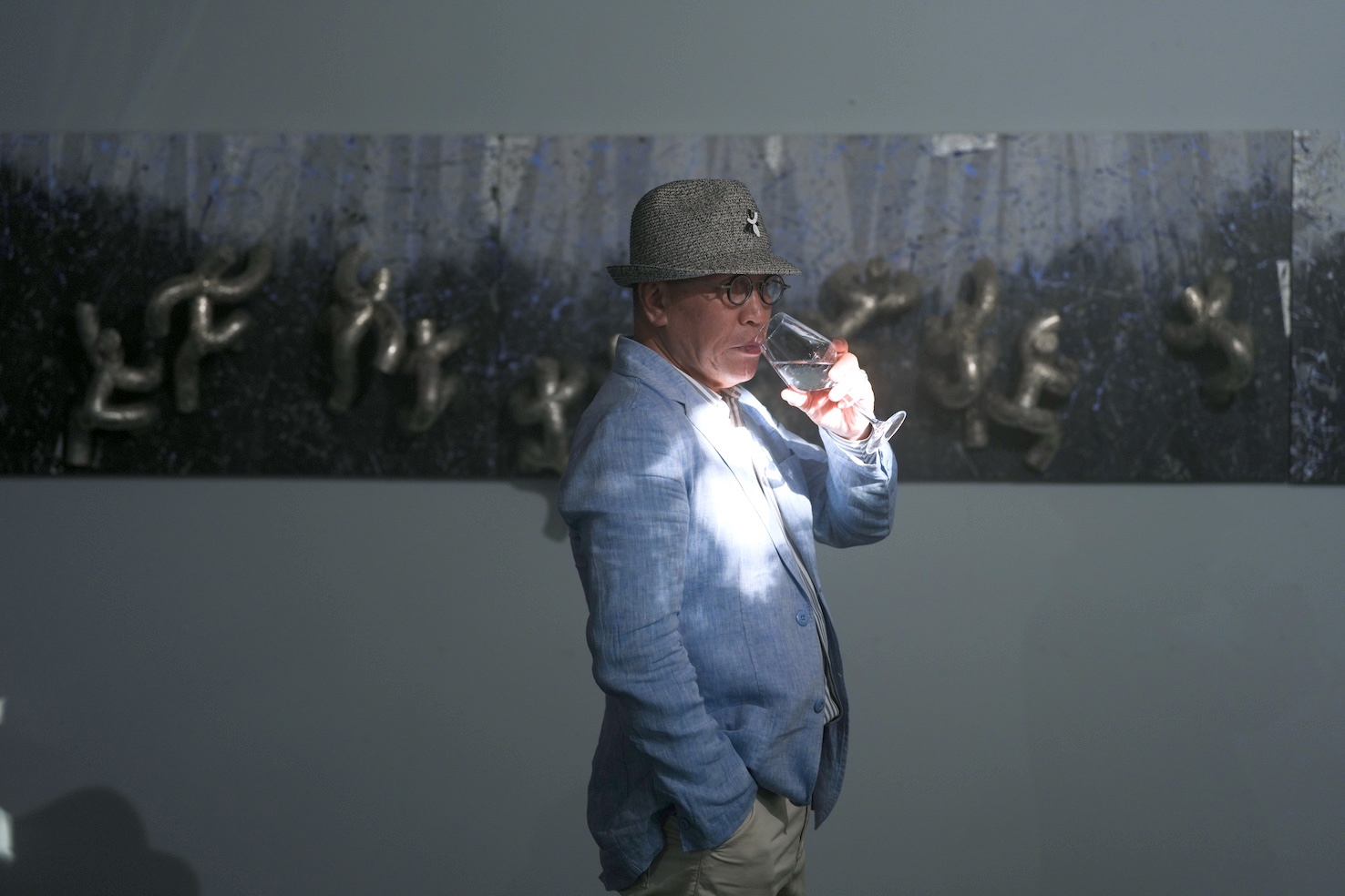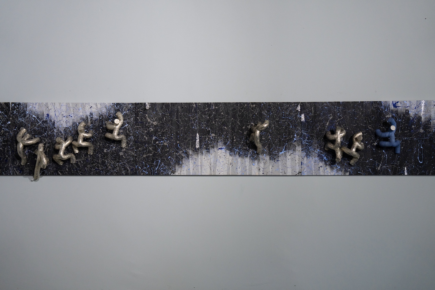 展厅核心位置安放着两尊雕塑——《亲子乐》(Family Bliss)与《爵士手》(Jazz Player),环伺其周的是无数极简的圆管人,仿佛正奋力攀援生命的峰峦。这群“攀登者”凝练了植根于东方美学的轻盈哲思,也开启了对普世共生之道的探讨。“我们合力拨开云雾,驱散迷障,朝向光明攀升”艺术家如是阐述。它们是我们时代的图腾,是抽象的存在体,是需要倾听的在场者——策展人保罗教授将其定义为“通往至福的生命灵韵,其星灵之躯充盈神性,在与自我的交融中臻于平衡与泰然”。它们象征着人与自然、科技与冥想、肉身与精神之间可能达成的和谐。