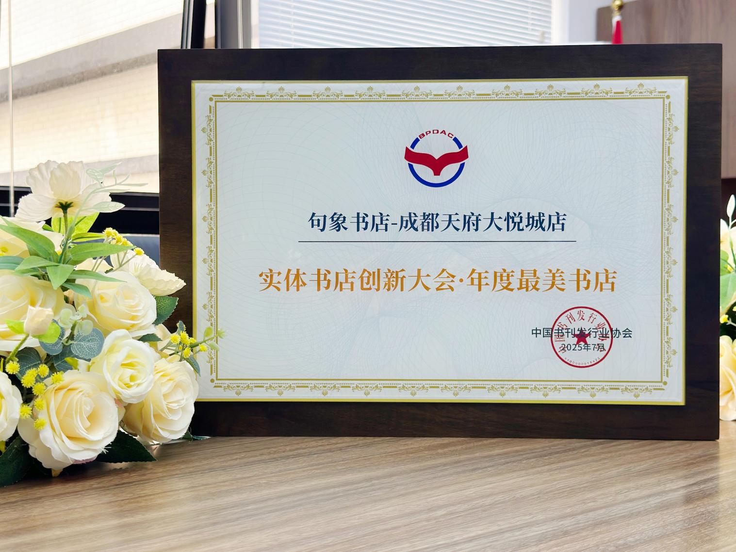 在书博会同期举办的实体书店创新大会暨年度最美书店发布活动上,句象书店成都天府大悦城店成功入选“全国最美书店”,为成都文化版图再添新彩。句象书店是A股上市企业学大教育集团响应国家全民阅读战略,着力打造的复合式文化阅读空间。天府大悦城店于2023年底开业后,迅速以在地文化特色融入了市民生活。