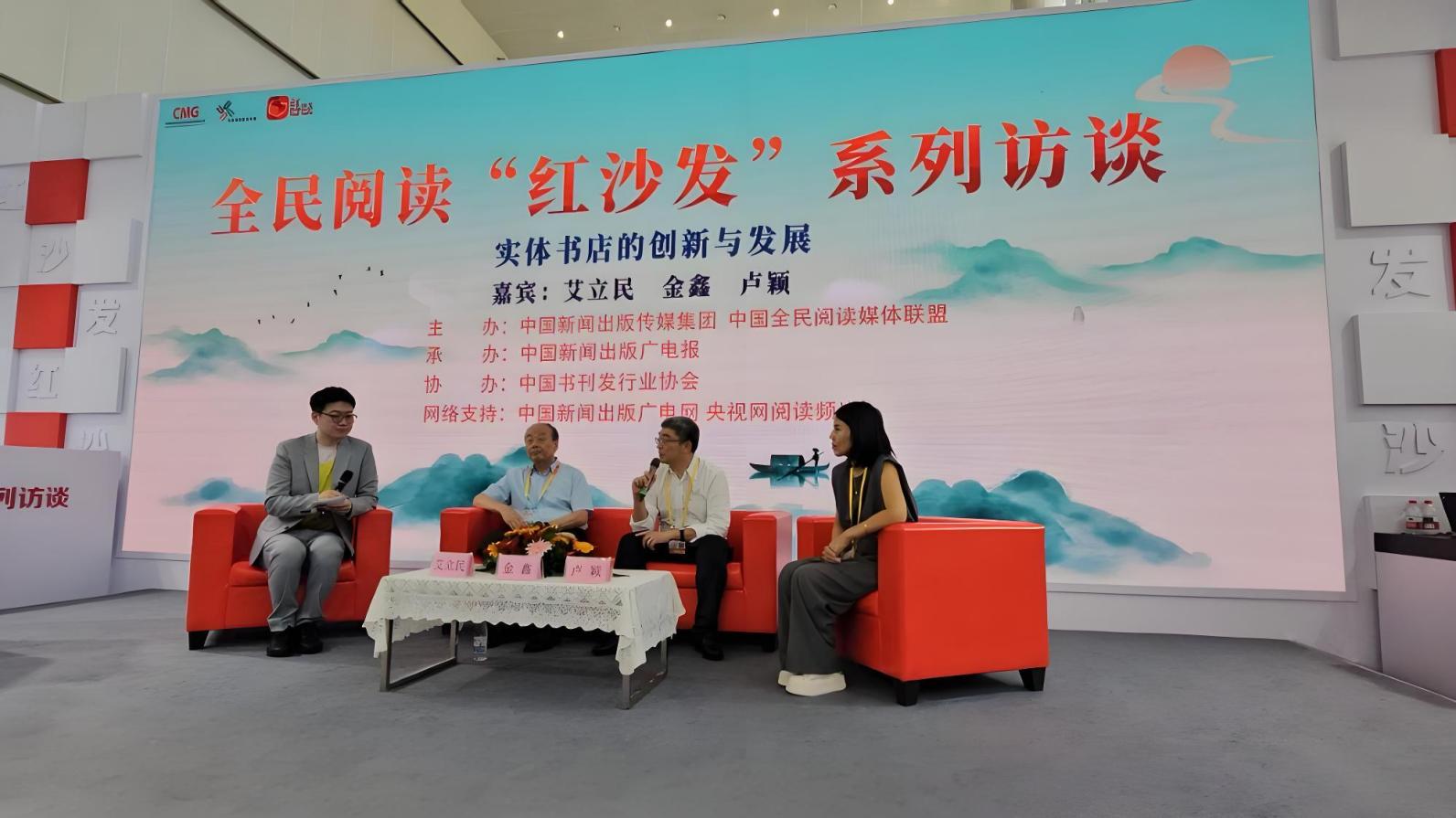 活动现场,学大教育集团创始人、董事长兼CEO金鑫受邀分享句象书店作为城市文明“微缩景观”赓续文脉的创新实践;并参加“‘红沙发’系列访谈”,与中国书刊发行业协会理事长艾立民和安徽亳州新华书店伊顿庄园店店长卢颖,一同探讨了新时代下实体书店的发展路径、创新方向与未来愿景。