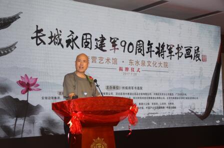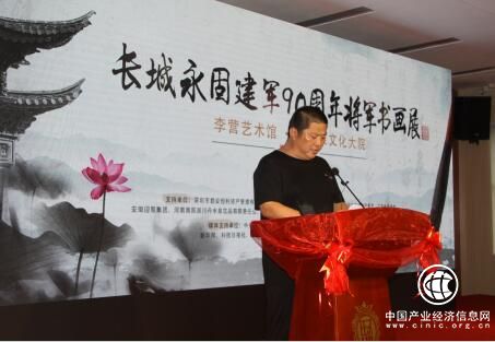 会上李营向大家介绍,此次展览展现了将军们的爱国热情,同时将军们也将深入基层调研,体验生活,和当地企业家、军旅书画家和地方书画爱好者互相切磋探讨,是东水泉村文化交流的一次盛会。我深感荣幸“李营艺术馆”在北京这个最美乡村的大地上生根、开花、结果,这不但是我个人的幸事,也是北京艺术家的幸事。我将继续为弘扬拥军优属的光荣传统,巩固发展军民关系,实现中国梦强军梦贡献力量。为此,我一定不辜负东水泉村父老乡亲的希望,拿出最优秀的成绩服务于人民,造福于一方。
