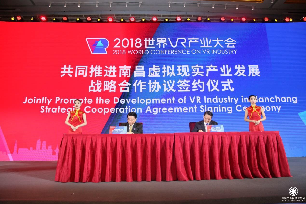 会上,苗圩、易炼红分别代表工业和信息化部、江西省政府签署了《工业和信息化部 江西省人民政府关于共同推进南昌虚拟现实产业发展战略合作协议》。