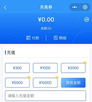 记者在蓝月亮的官方微信小程序月亮商城注册会员后了解到,“月亮券”是一种线上的一种预付充值卡,最低充值金额为300元,并且不设上限。