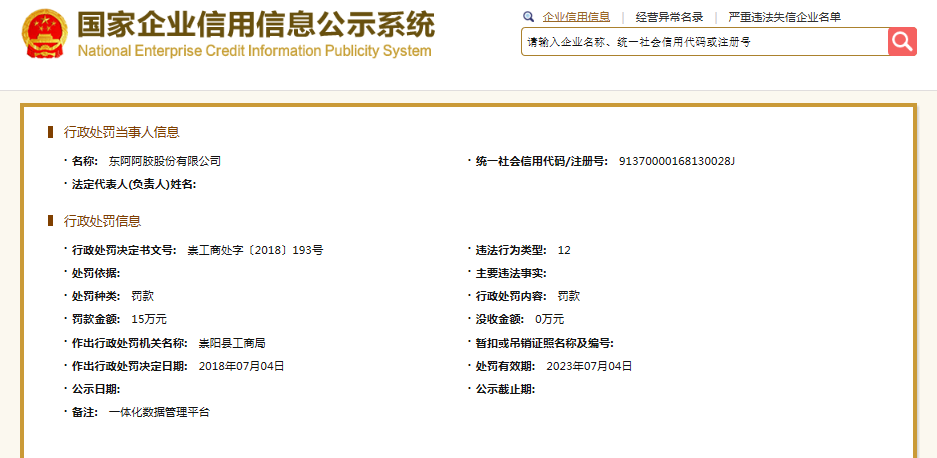 无独有偶,管理上的漏洞远不止虚假宣传。据国家企业信用信息公示系统,2018年07月04日,崇阳县工商局对其做出行政处罚,处罚金额15万元,缘由未公示。