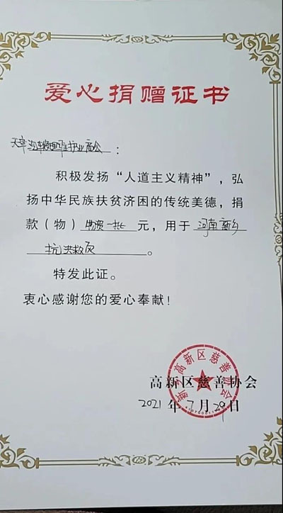 天津市汽车修理维护业商会会长白振亮表示,灾情发生后商会各会员单位积极行动,向灾区奉献爱心,这既是社会责任,也是中华民族“一方有难八方支援”的优良传统,希望此次捐赠能够对河南抗洪救灾有一定的帮助。